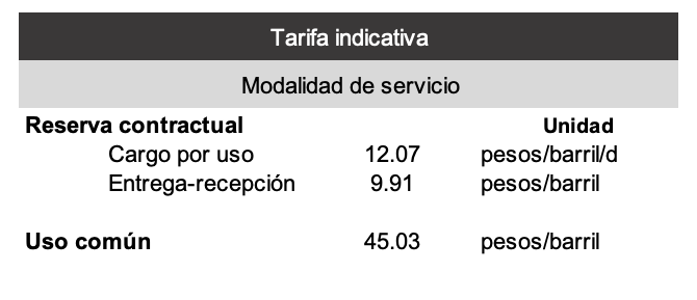 Por otro lado, la Tarifa Máxima regulada será determinada, con base en los activos y costos de operación y mantenimiento requeridos para satisfacer los servicios bajo cada modalidad de Reserva y que haya sido autorizada por la Comisión Reguladora de Energía posterior al otorgamiento del permiso de almacenamiento, correspondiente.